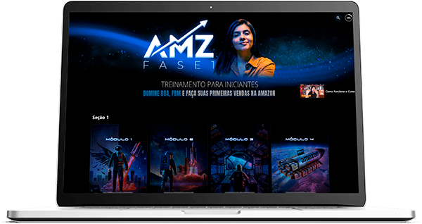 Treinamento completo na Amazon com +250 aulas, mentorias quinzenais e suporte dedicado para você vender do zero ao avançado